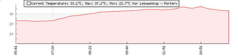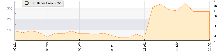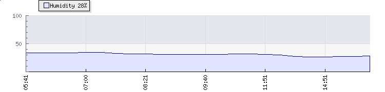 Wind Gust: | 50 km/h | Min Temp: | 22.7 °C | Max Temp: | 28 °C | Wind Average: | 37 km/h | Min Hum: | 32 % | Max Hum: | 34 % | |  |
