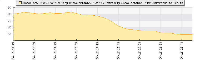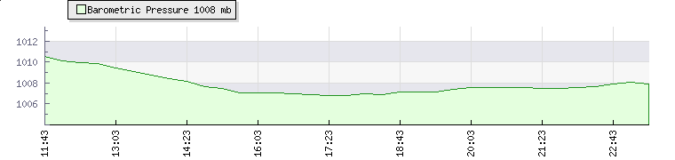 | Wind Speed: | 5|8|12 kmh | Wind Direction: | W 270° | Temperature: | 9.9°C | | Wet Bulb: | 6.9°C | Discomfort: | 51 | Humidity: | 70% | | Barometer: | 1007.7mb | Dew Point: | 4.7°C | Clouds AGL: | 2086ft (636 m) | | Density-Alt: | 2657ft (810 m) | Fire Danger: | |