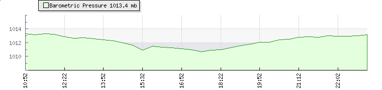 | Wind Speed: | 6|14|23 kmh | Wind Direction: | SW 230° | Temperature: | 14.9°C | | Wet Bulb: | 10.3°C | Discomfort: | 63 | Humidity: | 59% | | Barometer: | 1013mb | Dew Point: | 7°C | Clouds AGL: | 3177ft (968 m) | | Density-Alt: | 3084ft (940 m) | Fire Danger: | |