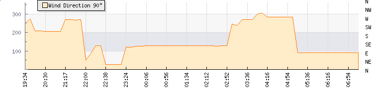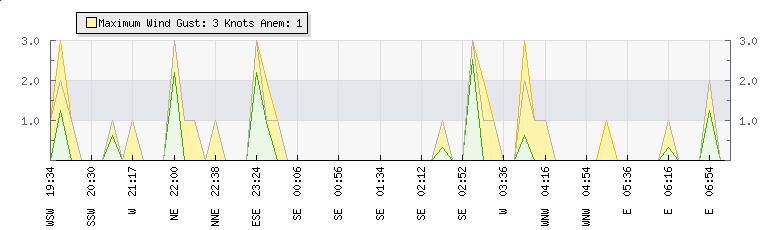 In the last few minutes the wind was Easterly at an average speed of 0 knots, reaching up to 0 knots and a low of 0 knots. The gust strength is0 knots above the minimum speed |