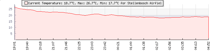 | GPS Co-ordinates: | S 33º 35' 06, E 18º 29' 39 | | ASL: | 330 feet | | Sunrise / Sunset: | 05:42 / 19:18 | | Beaufort Scale: | Light Air |