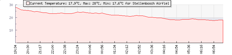 | GPS Co-ordinates: | S 33º 58' 42, E 18º 49' 12 | | ASL: | 397 feet | | Sunrise / Sunset: | 07:02 / 18:31 | | Beaufort Scale: | Calm |