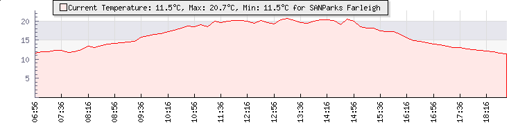 | GPS Co-ordinates: | S 33º 53' 27, E 22º 52' 36 | | ASL: | 1524 feet | | Sunrise / Sunset: | 06:55 / 18:00 | | Beaufort Scale: | Light Breeze |