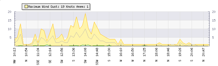 Au cours des dernières minutes, le vent étaitDu sud à une vitesse moyenne de 1 knots atteignant jusqu'à 2 knots et un faible de 0 knots. 2 knots au-dessus de la vitesse minimale. |