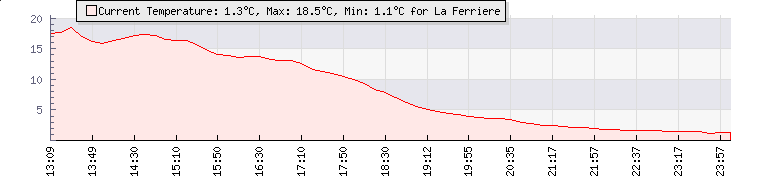 | Les coordonnées GPS: | N 45º 18' 19, E 6º 4' 53 | | ASL: | 3280 feet | | Lever du soleil: | 08:09 / 19:26 | | Échelle de Beaufort: | Air léger |