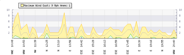 Au cours des dernières minutes, le vent étaitDu nord à une vitesse moyenne de 1 mph atteignant jusqu'à 2 mph et un faible de 0 mph. 2 mph au-dessus de la vitesse minimale. |