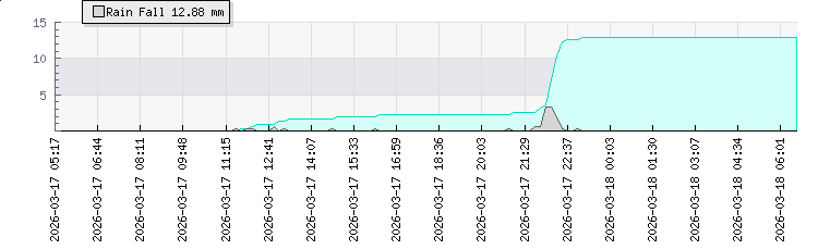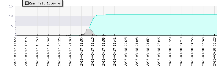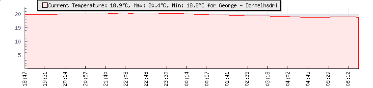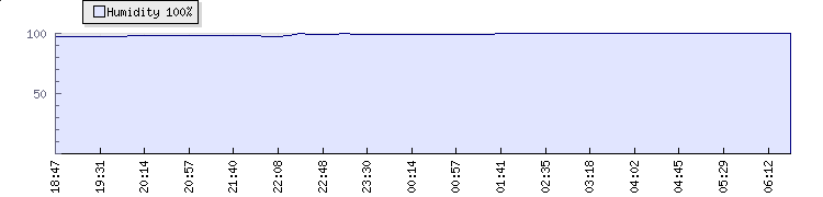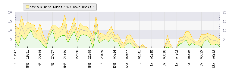 | Wind Gust: | 9 km/h | Min Temp: | 18.8 °C | Max Temp: | 20.1 °C | | Wind Average: | 7 km/h | Min Hum: | 99 % | Max Hum: | 100 % | |  |