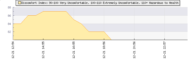 | Wind Speed: | 3|6|9 kmh | Wind Direction: | S 190° | Temperature: | 19.6°C | | Wet Bulb: | 17.6°C | Discomfort: | 80 | Humidity: | 84% | | Rainfall Today: | 0mm | 12 hrs Rainfall: | 0mm | 24 hrs Rainfall: | 0mm | | Barometer: | 1010.4mb | Dew Point: | 16.8°C | Clouds AGL: | 1112ft (339 m) | | Density-Alt: | 1962ft (598 m) | Fire Danger: | |