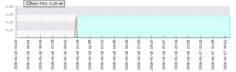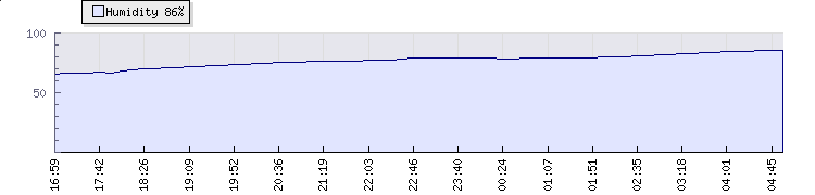 | Wind Gust: | 6 km/h | Min Temp: | 17.5 °C | Max Temp: | 18.2 °C | | Wind Average: | 4 km/h | Min Hum: | 79 % | Max Hum: | 82 % | |  |