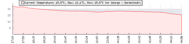 | GPS Co-ordinates: | S 33º 57' 46, E 22º 27' 06 | | ASL: | 883 feet | | Sunrise / Sunset: | 05:35 / 19:44 | | Beaufort Scale: | Light Air |
