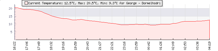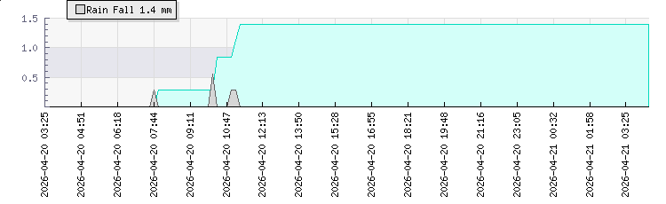 | Wind Gust: | 9 km/h | Min Temp: | 9.3 °C | Max Temp: | 11.8 °C | | Wind Average: | 7 km/h | Min Hum: | 56 % | Max Hum: | 60 % | |  |