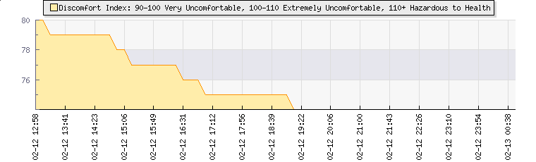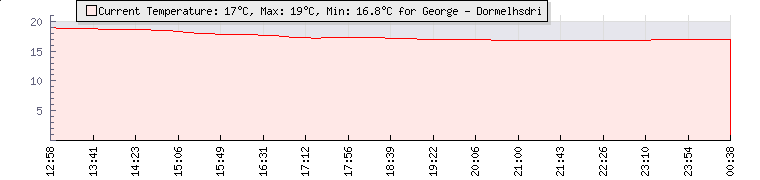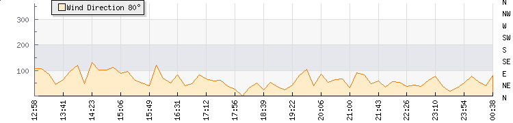 | Wind Gust: | 10 knots | Min Temp: | 16.8 °C | Max Temp: | 19 °C | | Wind Average: | 8 knots | Min Hum: | 91 % | Max Hum: | 97 % | |  |