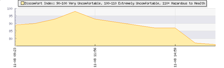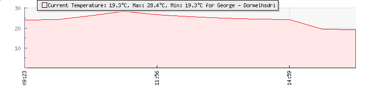 | Wind Gust: | 10 mph | Min Temp: | 19.3 °C | Max Temp: | 28.4 °C | | Wind Average: | 6 mph | Min Hum: | 57 % | Max Hum: | 73 % | |  |