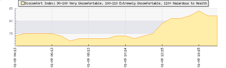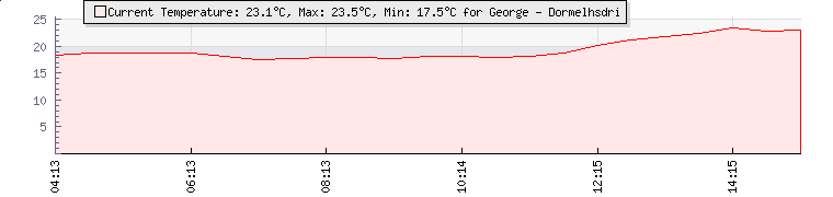 | Wind Gust: | 16 mph | Min Temp: | 12.3 °C | Max Temp: | 32.9 °C | | Wind Average: | 11 mph | Min Hum: | 33 % | Max Hum: | 75 % | |  |