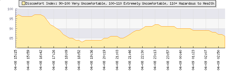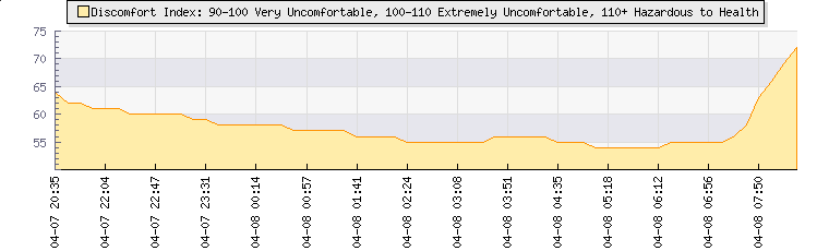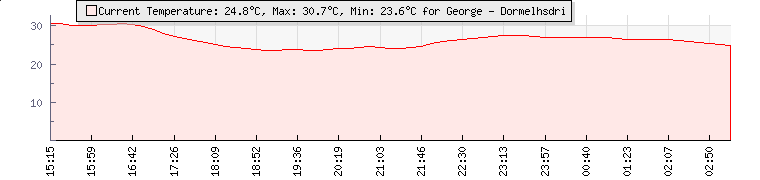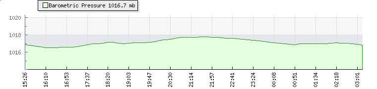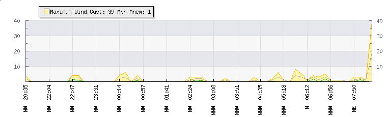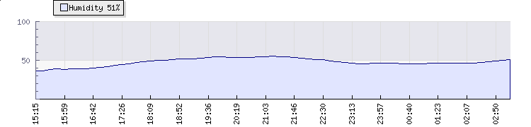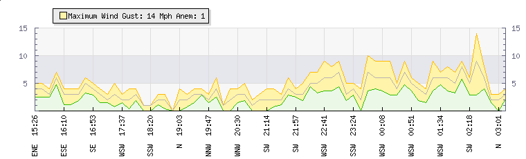 | Wind Gust: | 9 mph | Min Temp: | 26.5 °C | Max Temp: | 27.1 °C | | Wind Average: | 7 mph | Min Hum: | 45 % | Max Hum: | 46 % | |  |
