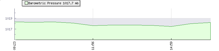 | Wind Speed: | 1|3|5 mph | Wind Direction: | ENE 59° | Temperature: | 19.3°C | | Wet Bulb: | 16°C | Discomfort: | 77 | Humidity: | 73% | | Rainfall Today: | 0mm | 12 hrs Rainfall: | 0mm | 24 hrs Rainfall: | 0mm | | Barometer: | 1017.7mb | Dew Point: | 14.3°C | Clouds AGL: | 1986ft (605 m) | | Density-Alt: | 1627ft (496 m) | Fire Danger: | |