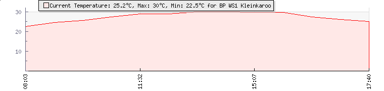 | Wind Gust: | 17 knots | Min Temp: | 14.1 °C | Max Temp: | 30 °C | | Wind Average: | 11 knots | Min Hum: | 30 % | Max Hum: | 59 % | |  |