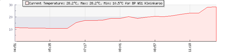| GPS Co-ordinates: | S 33º 26' 15, E 21º 32' 52 | | ASL: | 2877 feet | | Sunrise / Sunset: | 05:31 / 19:05 | | Beaufort Scale: | Light Air |
