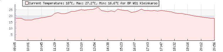 | Wind Gust: | 12 mph | Min Temp: | 16.5 °C | Max Temp: | 27.2 °C | | Wind Average: | 9 mph | Min Hum: | 55 % | Max Hum: | 82 % | |  |