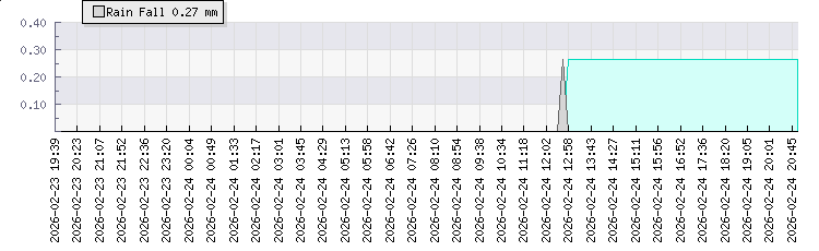 | Wind Speed: | 0|4|8 mph | Wind Direction: | ESE 117° | Temperature: | 20.6°C | | Wet Bulb: | 16.1°C | Discomfort: | 78 | Humidity: | 64% | | Rainfall Today: | 0.3mm | 12 hrs Rainfall: | 0.3mm | 24 hrs Rainfall: | 0.3mm | | Barometer: | 1012mb | Dew Point: | 13.6°C | Clouds AGL: | 2823ft (860 m) | | Density-Alt: | 4439ft (1353 m) | Solar Radiation: | 3Wm² | Fire Danger: | |