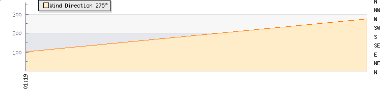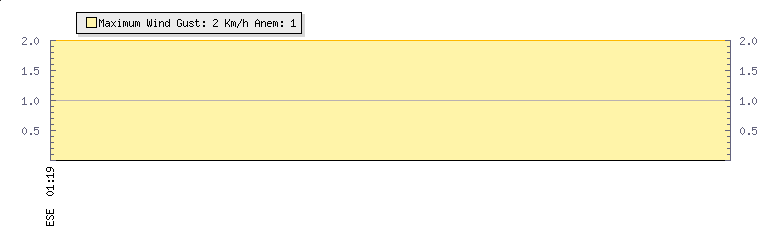 In the last few minutes the wind was Westerly at an average speed of 1 kmh, reaching up to 2 kmh and a low of 0 kmh. The gust strength is2 kmh above the minimum speed |