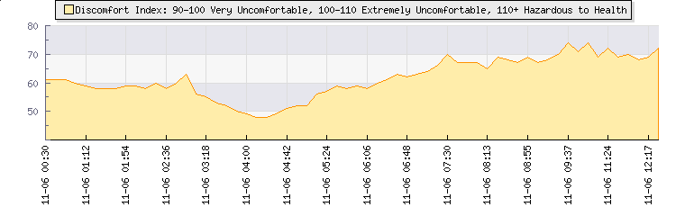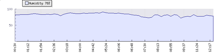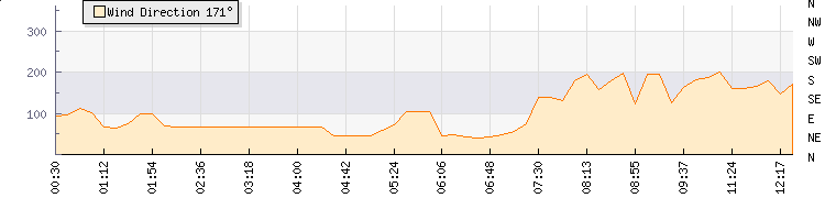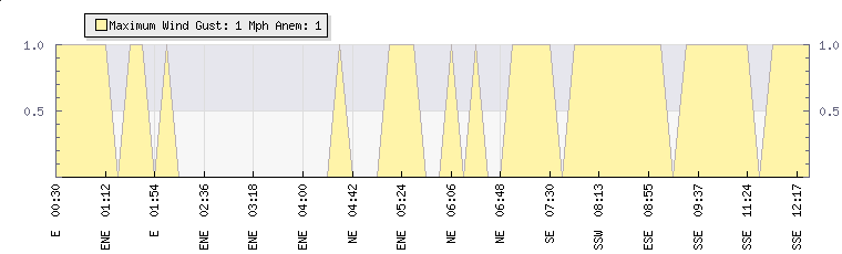 In the last few minutes the wind was Southerly at an average speed of 1 mph, reaching up to 1 mph and a low of 0 mph. The gust strength is1 mph above the minimum speed |