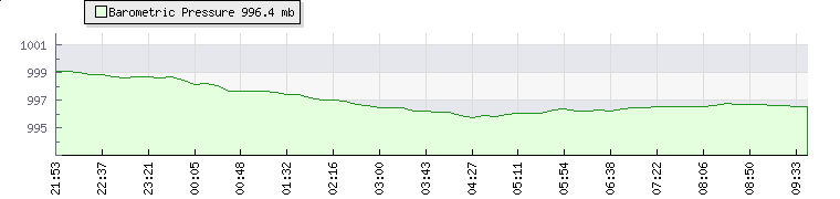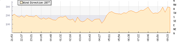 In the last few minutes the wind was South Westerly at an average speed of 6 mph, reaching up to 11 mph and a low of 0 mph. The gust strength is11 mph above the minimum speed |