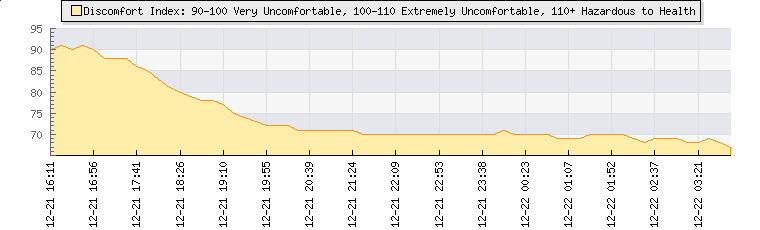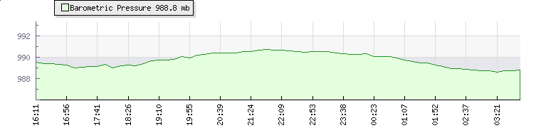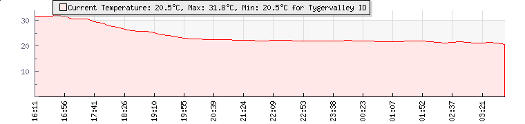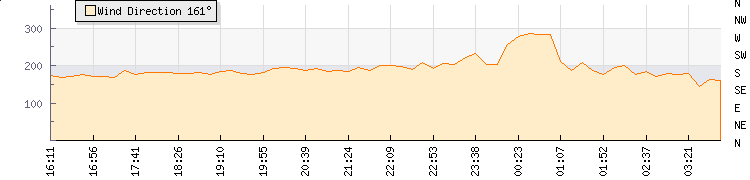 | Wind Gust: | 17 km/h | Min Temp: | 22.4 °C | Max Temp: | 23 °C | | Wind Average: | 9 km/h | Min Hum: | 10 % | Max Hum: | 10 % | |  |