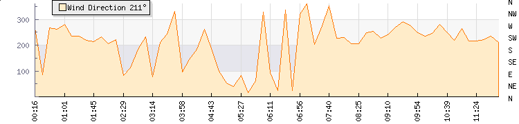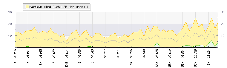 In the last few minutes the wind was South Westerly at an average speed of 15 mph, reaching up to 25 mph and a low of 6 mph. The gust strength is19 mph above the minimum speed |