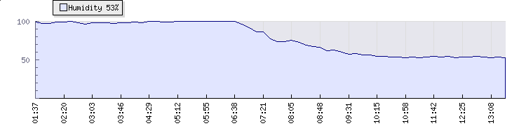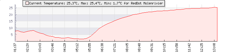 | Wind Gust: | 43 km/h | Min Temp: | 2.7 °C | Max Temp: | 24.9 °C | | Wind Average: | 34 km/h | Min Hum: | 53 % | Max Hum: | 100 % | |  |