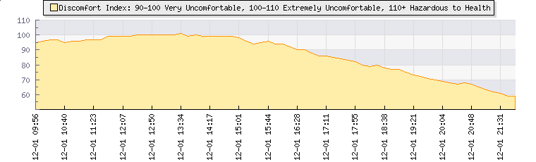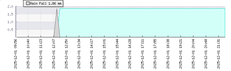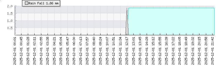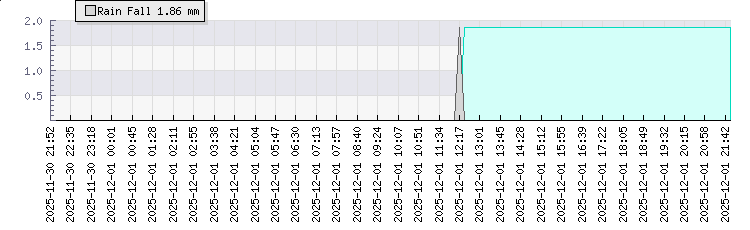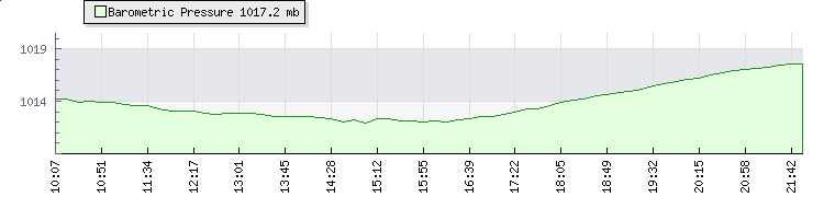 | Wind Speed: | 0|1|3 mph | Wind Direction: | NNW 332° | Temperature: | 13.2°C | | Wet Bulb: | 12°C | Discomfort: | 62 | Humidity: | 90% | | Rainfall Today: | 1.9mm | 12 hrs Rainfall: | 1.9mm | 24 hrs Rainfall: | 1.9mm | | Barometer: | 1017.2mb | Dew Point: | 11.6°C | Clouds AGL: | 642ft (196 m) | | Density-Alt: | 2343ft (714 m) | Fire Danger: | |