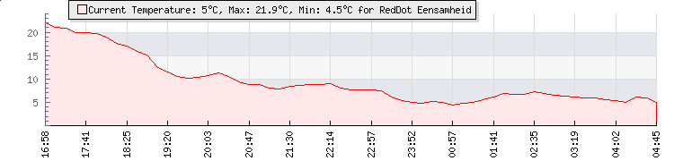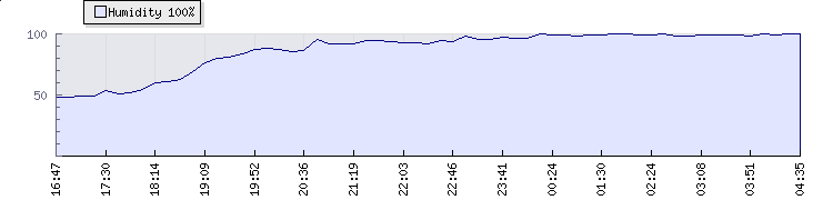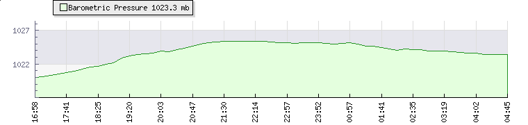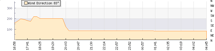 | Wind Gust: | 34 km/h | Min Temp: | 3.4 °C | Max Temp: | 25.8 °C | | Wind Average: | 18 km/h | Min Hum: | 45 % | Max Hum: | 100 % | |  |