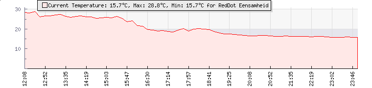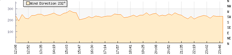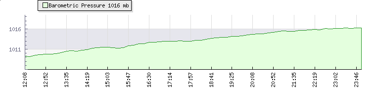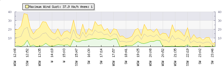 | Wind Gust: | 38 km/h | Min Temp: | 8.4 °C | Max Temp: | 29.8 °C | | Wind Average: | 22 km/h | Min Hum: | 44 % | Max Hum: | 100 % | |  |