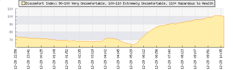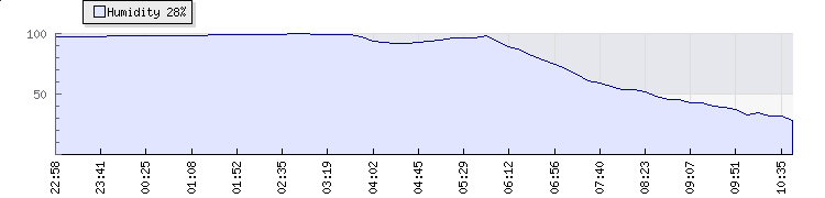 | Wind Gust: | 16 km/h | Min Temp: | 14.1 °C | Max Temp: | 28.8 °C | | Wind Average: | 9 km/h | Min Hum: | 48 % | Max Hum: | 100 % | |  |