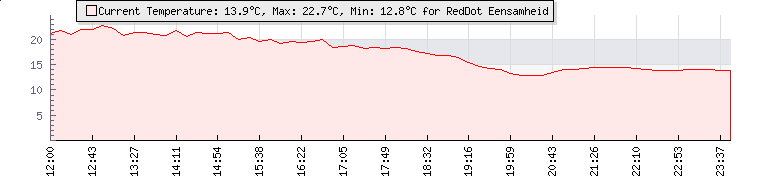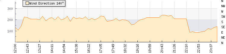 | Wind Gust: | 21 knots | Min Temp: | 11.3 °C | Max Temp: | 23.7 °C | | Wind Average: | 12 knots | Min Hum: | 40 % | Max Hum: | 91 % | |  |