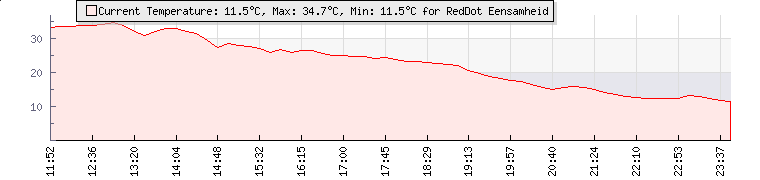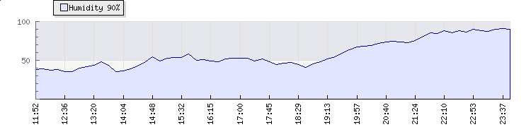 | Wind Gust: | 29 mph | Min Temp: | 10.6 °C | Max Temp: | 35.7 °C | | Wind Average: | 17 mph | Min Hum: | 34 % | Max Hum: | 100 % | |  |