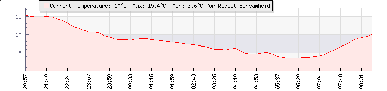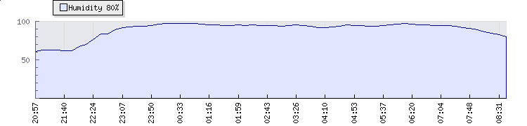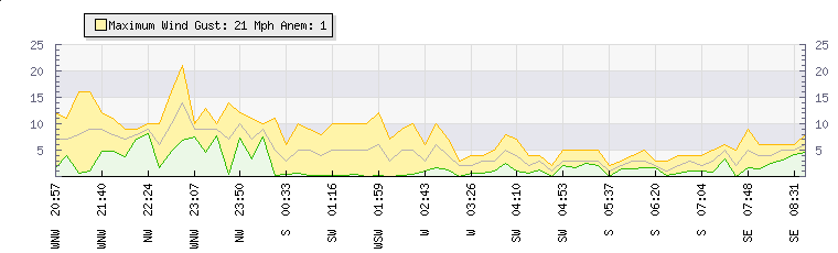 | Wind Gust: | 12 mph | Min Temp: | 4.6 °C | Max Temp: | 9.8 °C | | Wind Average: | 9 mph | Min Hum: | 92 % | Max Hum: | 97 % | |  |