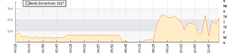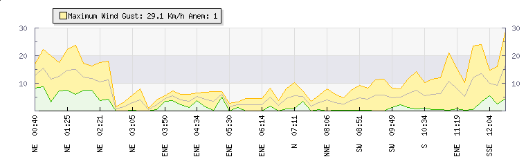 In the last few minutes the wind was Northerly at an average speed of 5 kmh, reaching up to 8 kmh and a low of 2 kmh. The gust strength is6 kmh above the minimum speed |