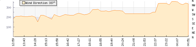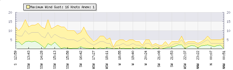 In the last few minutes the wind was South Westerly at an average speed of 3 knots, reaching up to 4 knots and a low of 2 knots. The gust strength is2 knots above the minimum speed |