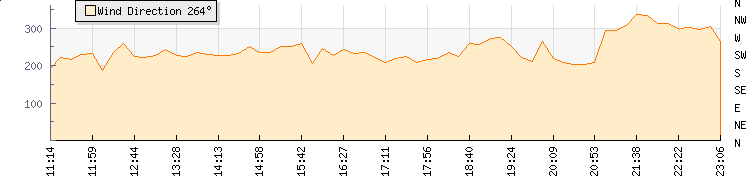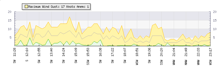 In the last few minutes the wind was North North West at an average speed of 2 knots, reaching up to 4 knots and a low of 0 knots. The gust strength is4 knots above the minimum speed |