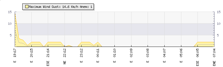 In the last few minutes the wind was Easterly at an average speed of 0 kmh, reaching up to 0 kmh and a low of 0 kmh. The gust strength is0 kmh above the minimum speed |