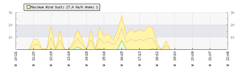 In the last few minutes the wind was Westerly at an average speed of 0 kmh, reaching up to 0 kmh and a low of 0 kmh. The gust strength is0 kmh above the minimum speed |