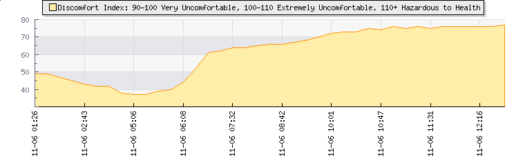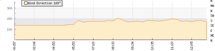 In the last few minutes the wind was Southerly at an average speed of 14 kmh, reaching up to 25 kmh and a low of 3 kmh. The gust strength is22 kmh above the minimum speed |