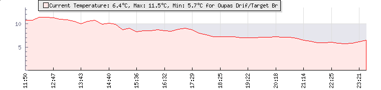 GPS Co-ordinates: | S 33º 48' 26, E 22º 53' 30 | ASL: | 3097 feet | Sunrise / Sunset: | 06:06 / 18:31 | Beaufort Scale: | Light Air |