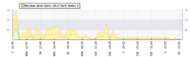 In the last few minutes the wind was Southerly at an average speed of 1 kmh, reaching up to 2 kmh and a low of 0 kmh. The gust strength is2 kmh above the minimum speed |