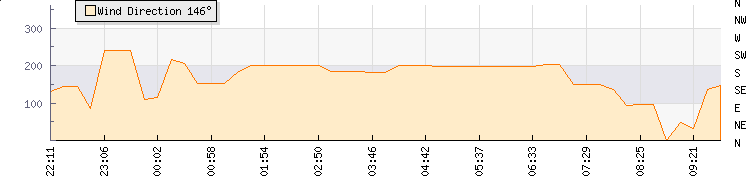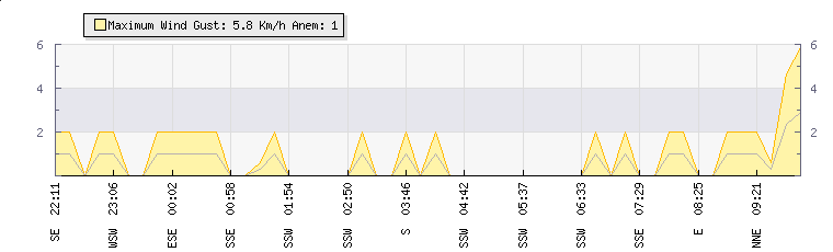 In the last few minutes the wind was South Easterly at an average speed of 1 kmh, reaching up to 2 kmh and a low of 0 kmh. The gust strength is2 kmh above the minimum speed |