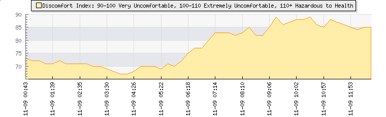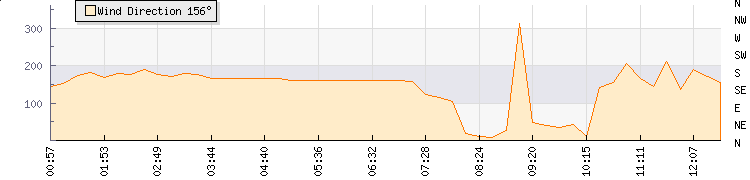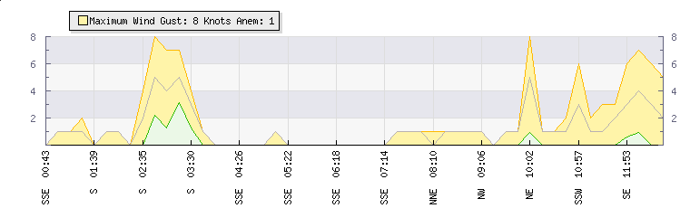 In the last few minutes the wind was North Easterly at an average speed of 1 knots, reaching up to 1 knots and a low of 0 knots. The gust strength is1 knots above the minimum speed |