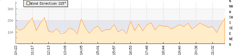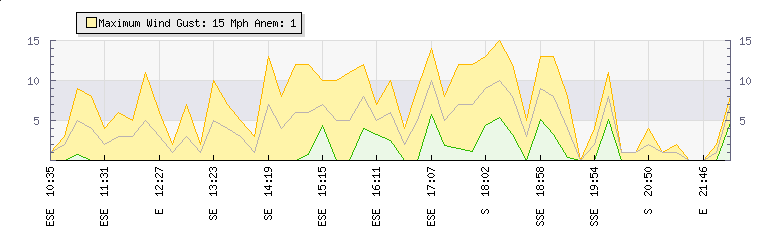 In the last few minutes the wind was Southerly at an average speed of 2 mph, reaching up to 4 mph and a low of 0 mph. The gust strength is4 mph above the minimum speed |