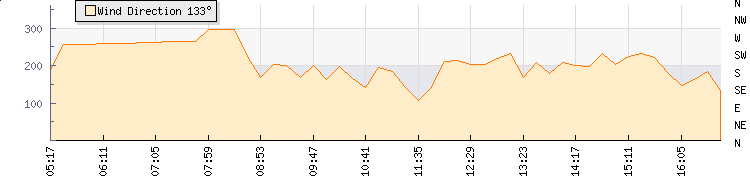In the last few minutes the wind was South Westerly at an average speed of 20 kmh, reaching up to 25 kmh and a low of 15 kmh. The gust strength is10 kmh above the minimum speed |