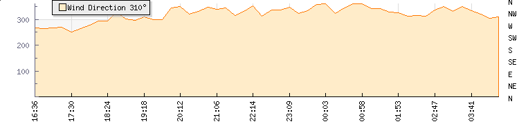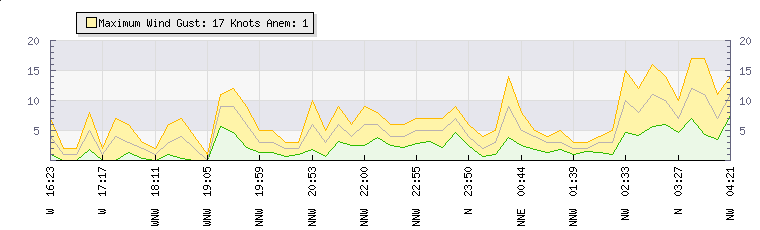 In the last few minutes the wind was Northerly at an average speed of 11 knots, reaching up to 16 knots and a low of 6 knots. The gust strength is10 knots above the minimum speed |